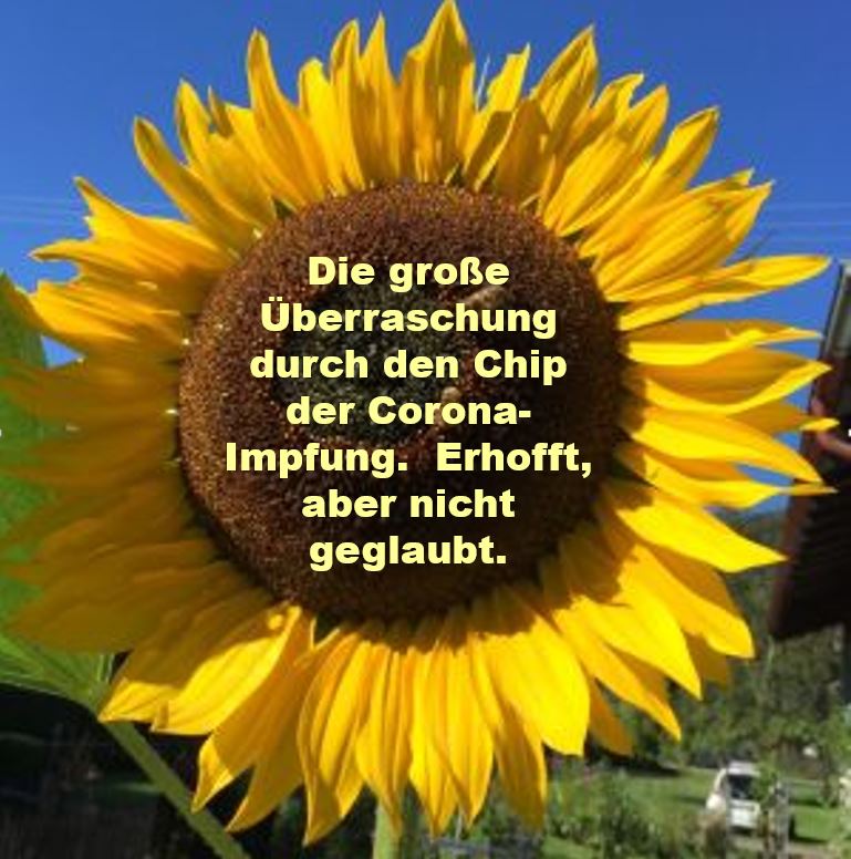 ENDLICH BIN ICH GEIMPFT! Zweimal ein kleiner Pieks. Ich hatte mir nach all den Postings zum Chip von BG schon so was Ähnliches gedacht. Als Gründer von Microsoft würde der Chip doch sicher eine digitale Wirkung haben. Und tatsächlich zu meiner Überraschung: ich bin jetzt ständig mit dem Internet verbunden und kann mit Augenbewegungen die Kommandos geben. Das ist einfach toll. Keinen Bildschirm mehr, keine Tastatur. Und ich sehe immer so groß oder wie mit einem Mikroskop, wie ich meine Augen einstelle.