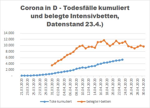 Die Südländer in unserer Nachbarschaft tun sich schwerer als wir Deutschen mit social distancing. Deshalb brannte die Hütte schon stärker, als die ersten Maßnahmen erfolgt sind.